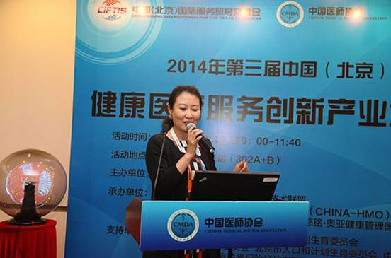 慈銘體檢集團總裁韓小紅在健康醫(yī)療服務創(chuàng)新產業(yè)大會暨項目推薦會上講話